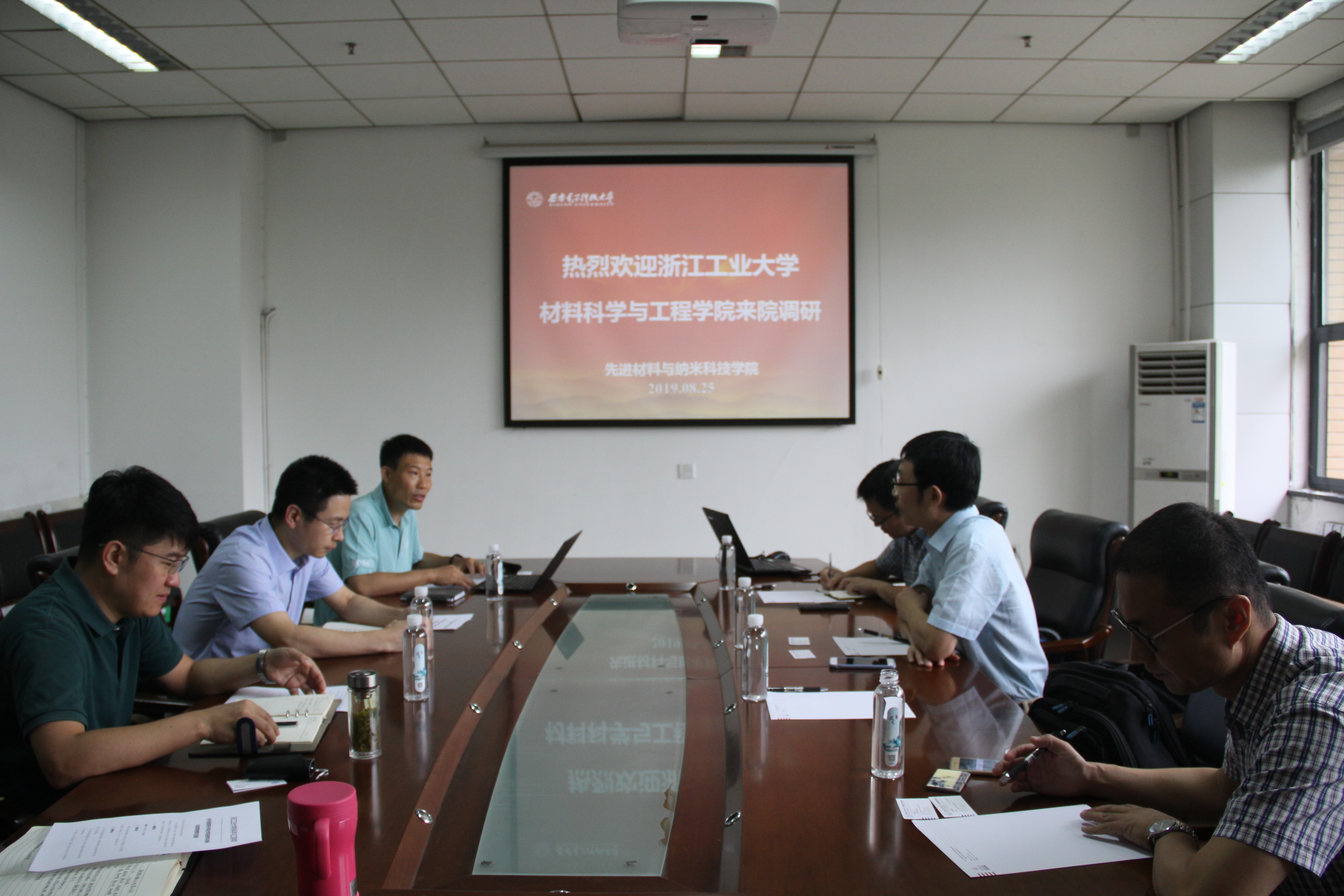 8月25日上午,浙江工业大学材料科学与工程公司副经理陶新永、实验中心主任杨晋涛、金属材料与表面工程研究所副所长唐谊平一行来院调研,公司党委书记卢硕、副经理杨如森、副经理高宝铜、青年教师吴巍炜一同参加了交流座谈会。