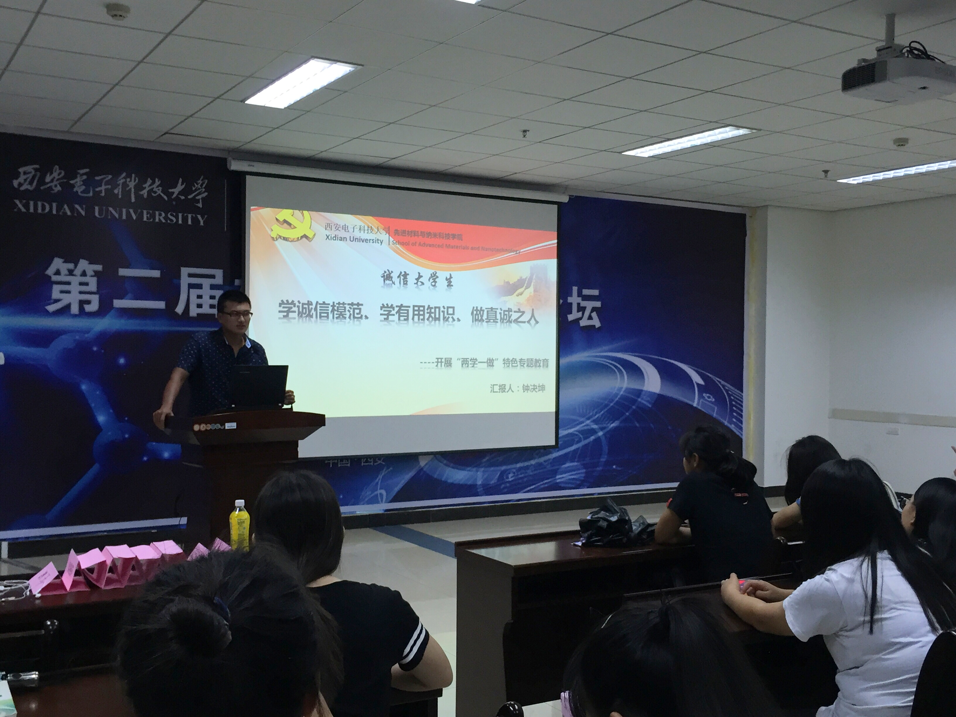此外,为了增强同学们诚信意识,7月3日晚18:30,2015级辅导员钟决坤在G-118报告厅,举办了“诚信老员工,诚信考试”专题教育活动,全体大一员工参会。活动中,辅导员钟决坤紧扣主题,从“行”、“考”、“职“、“课”四个方面着重解释此次专题“诚信教育”,并融入当代热点事例分别对这四方面内容加以分析,激励每位同学“学诚信模范,学有用知识,做真诚之人”。最后在钟决坤的带领下,全体大一员工郑重宣誓,争做诚信老员工,争创公司优良学风。