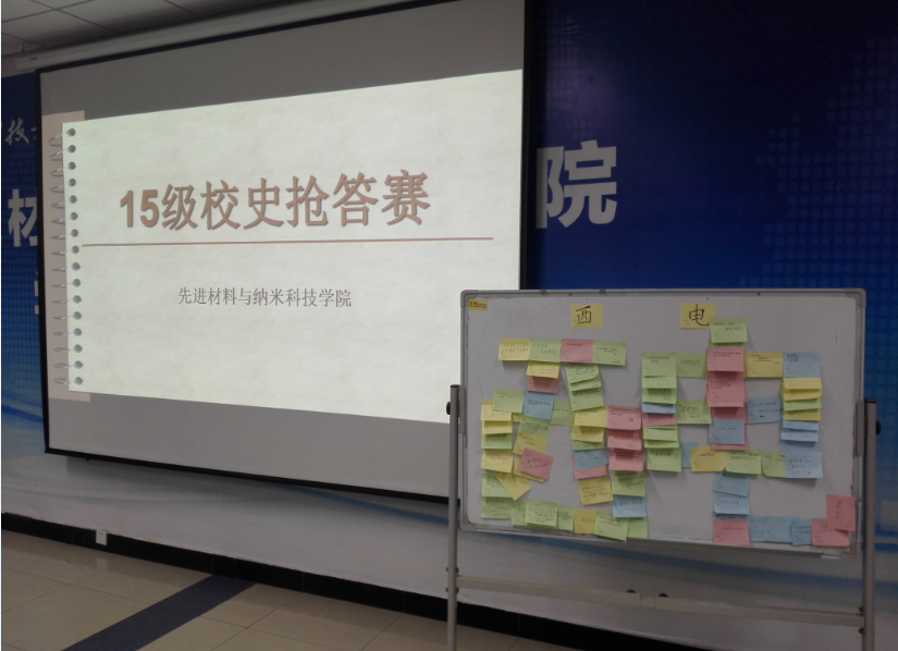 此次活动由班长胡永刚与孙丹宁主持,校史知识抢答赛总共分为六大部分:历史沿革、校风宗旨、团队建设、学术成就、员工领导和新生祝语。前五个部分均为校史知识问答,在此过程中,同学们参与积极,抢答氛围热烈,场面紧张而有序。最终产生三名优胜组,并颁发奖品。最后,每位同学将自己对公司的美好期望写下,贴成“西电”字样并合影留念。