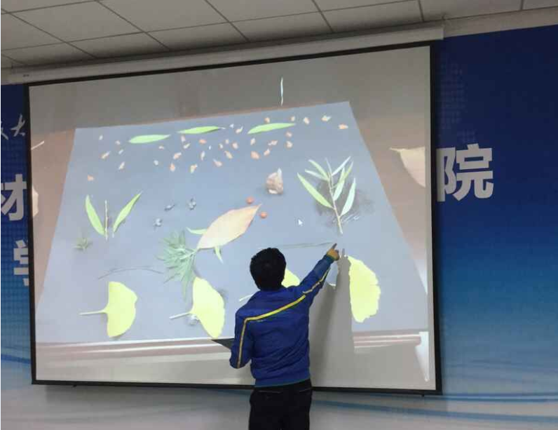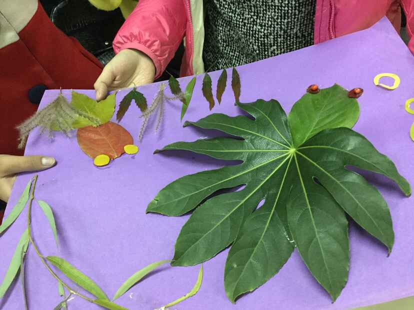 本次活动要求同学们以寝室为单位,限时30分钟,用自己闲暇时所拾到的各种美丽的叶子来拼凑出一幅作品,并且作出相应的解说。30分钟以后,同学们纷纷派出代表向全班同学展示他们团队的成果。萝卜鱼,小王子,花孔雀,大螃蟹,海洋景等等,普通的叶子经过巧妙的搭配后变成了美丽图案,蕴含着各自的寓意。无论是作品还是解说,都让人拍手称赞。在所有作品都解说完以后,根据评比,每个小组都获得了相应的奖品,团日活动圆满结束。