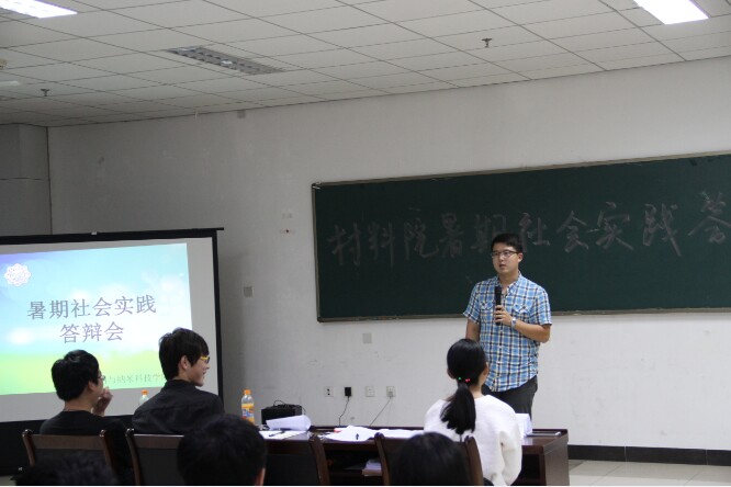 (通讯员 李泊龙)9月10日晚7点,在南校区G楼118会议室,先进材料与纳米科技公司团委举办了暑期社会实践答辩活动。14级辅导员李伟嘉,员工会主席郝思远,科协主席沈泽巍,团委实践部部长易翠担任答辩评委,团委各部门成员以及部分新生代表参加了此次答辩。