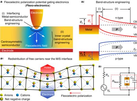 图1 具有中心对称结构的半导体中的挠曲电电子学的机理