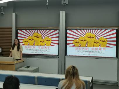 活动伊始,王悦同学以“新时代的中国青年”为主题,从“生逢盛世,共享机遇”“素质过硬,全面发展”“勇挑重担,堪当大任”“胸怀世界,展现担当”“可堪大用,能担重任”五个方面向同学们展示出新时代的中国青年无愧祖国和人民的期望,是整个社会力量中最积极、最有生气的力量,是实现中华民族伟大复兴的先锋力量。