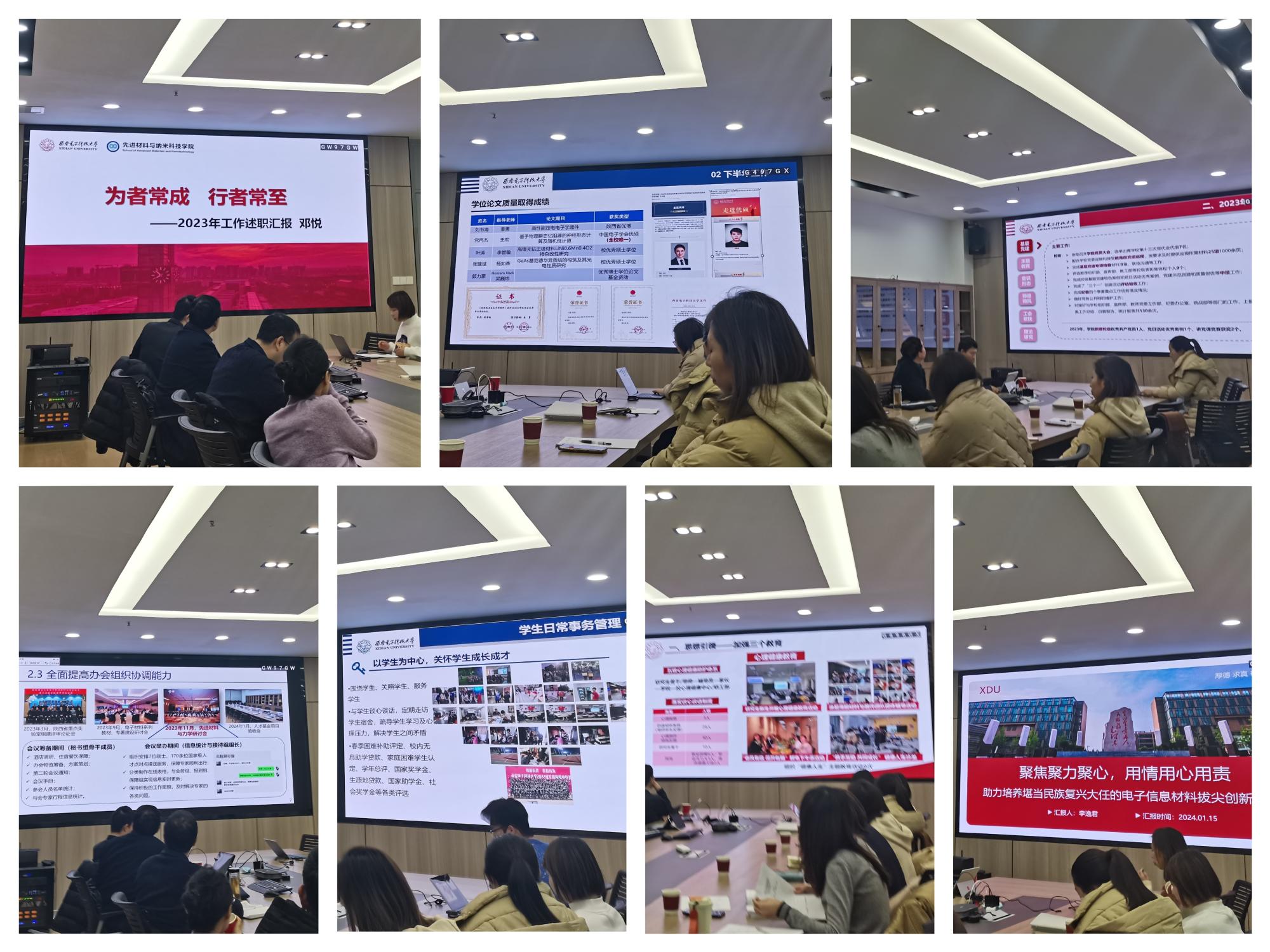 (通讯员 杜小红)2024年1月15日,世界杯官方网站入口2026在G-142举行2023年度教职工述职考核工作会,材料系、化学系、纳米系、智能所、院机关等90余名教职工分5组开展述职汇报交流。公司领导班子、系/所负责人等参会并作点评。