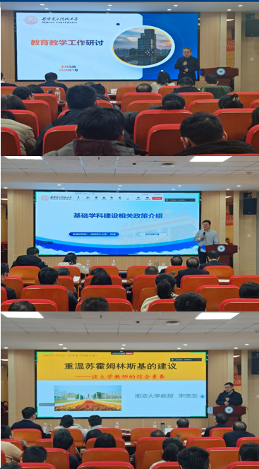 在邀请报告环节,公司邀请本科生院经理、教务处处长苏涛,发规部部长邓成,湘潭大学宋德发教授为全体教师作交流培训。苏涛作人才培养专题报告,详细讲解公司本科人才培养质量提升行动计划中的二十条举措,肯定了材料院在专业设置调整、师昌绪电子材料菁英班设立及教材编著等方面的举措。邓成作《基础团队建设相关政策介绍》报告,解读公司加强基础团队建设的政策与支持措施,鼓励公司教师和团队开展基础前沿与跨学科交叉研究。宋德发以《重温苏霍姆林斯基的建议 —— 谈大学教师的综合素养》为题进行教师培训交流,结合教育理念与自身经历,从多方面阐述大学教师的综合素养,勉励公司教师努力成为教育家,为教育事业奋斗。
