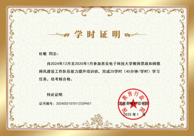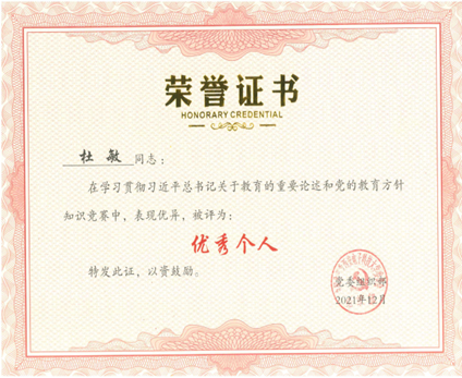 加强师德建设,弘扬教育家精神。深入一线、深入教师掌握教师需求是杜敏一贯的作风,在协助做好师德师风建设工作中,除了协助组织“大力弘扬教育家精神 培养造就高素质教师队伍”专题网络培训、《新时代高校教师职业行为十项准则》宣讲暨师德失典型案例警示教育大会等活动外,勤跑、勤问为她及时掌握第一手信息数据打下良好基础,师德师风月报、教师思政工作和师德师风建设观测点数据、师德总结等材料她都做到及时准确上报,为公司深化师德师风长效机制建设做了大量工作。2019年以来,公司涂层薄膜材料与器件团队入选校级黄大年式教师团队,9名教师获评校级优秀教师、师德标兵等荣誉称号。