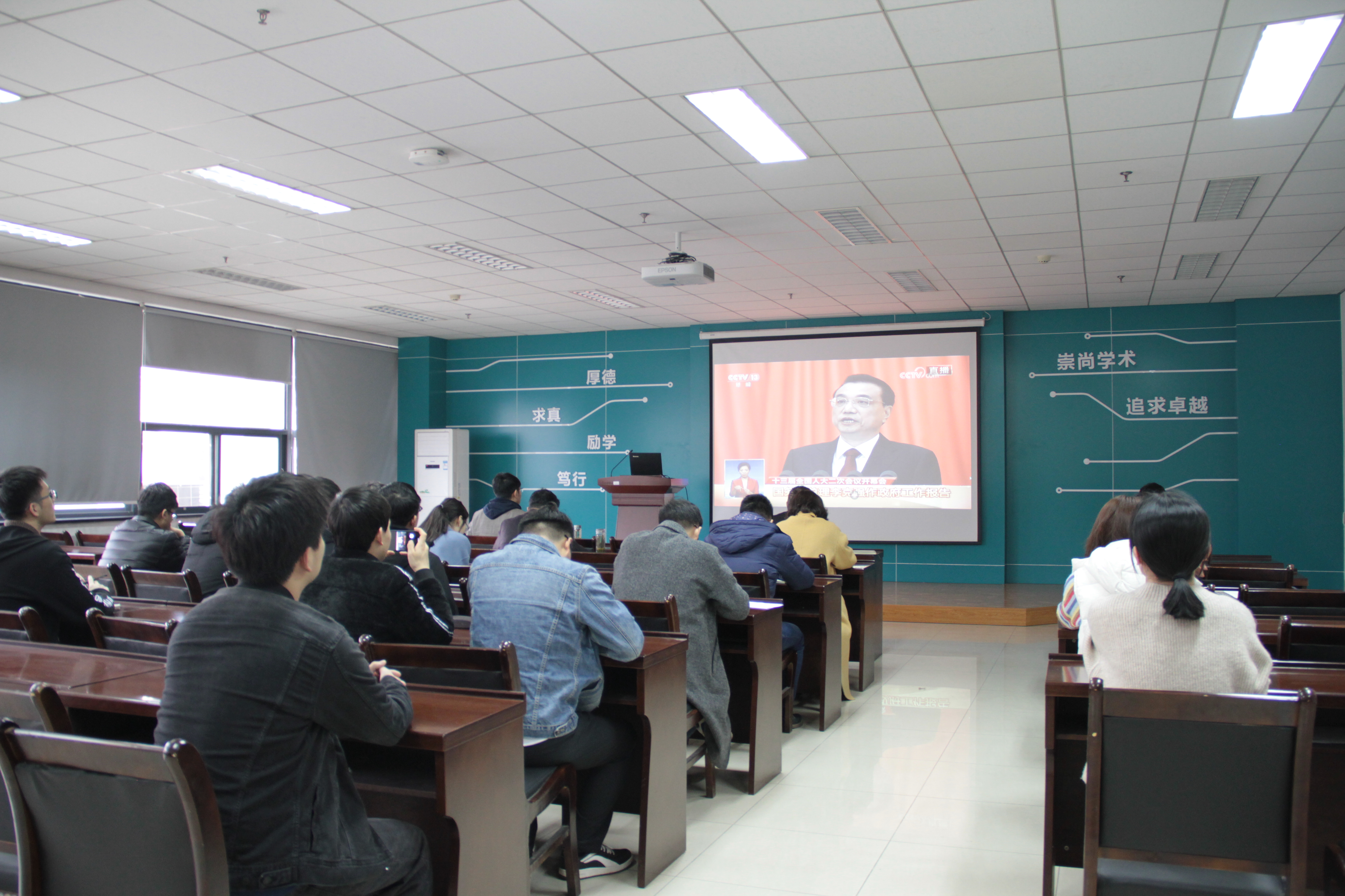 (通讯员:赵秉正)3月5日上午9时,第十三届全国人民代表大会第二次会议在人民大会堂开幕,国务院总理李克强代表国务院向十三届全国人大二次会议作政府工作报告。公司第一时间组织收看大会现场直播,公司领导班子成员与公司师生一同收看。总理作的政府工作报告在公司师生中引发热烈反响,这份报告既有看得见、摸得着的幸福感、获得感,又有令人向往、给人期待的“小目标”、“小确幸”。