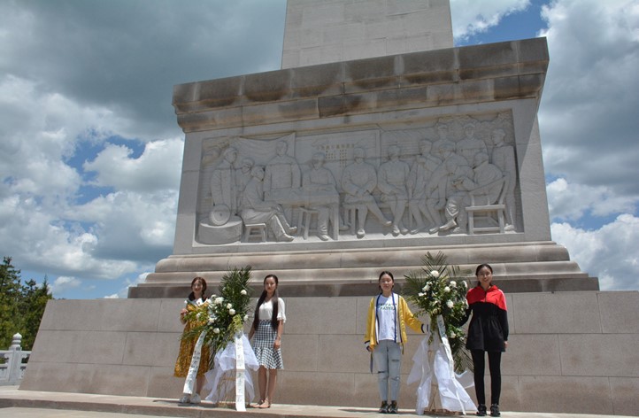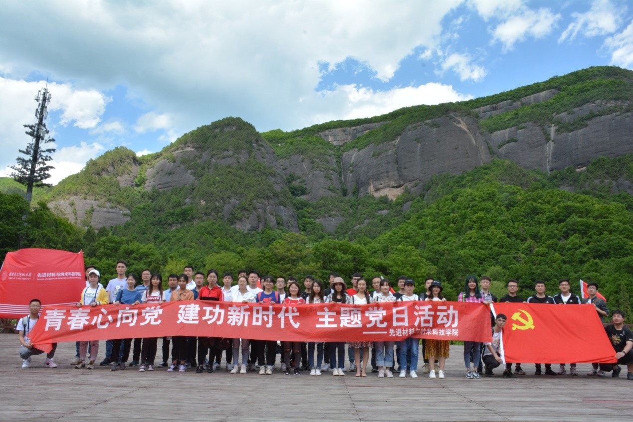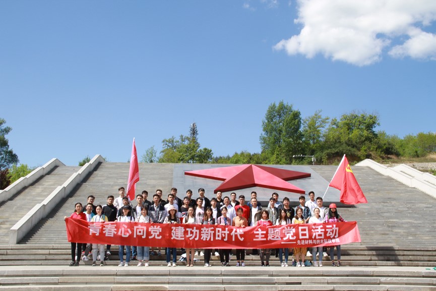 随后,全体学员拾阶而上,在镌有“陕甘边革命根据地的英雄们永垂不朽”16个大字的纪念碑前,开展了“青春心向党,建功新时代”主题党日活动。学员们面向革命先烈鞠躬致敬并敬献花篮。本科生党支部秦毅然和2018级研究生党支部王赛赛作为员工党员代表,分别分享了对习总书记的五四讲话精神的学习感想,他们表示作为老员工党员,要从自身做起,肩负时代使命,树立远大理想,传递五四精神。公司党委副书记程远与大家分享了这次学习参观的感受,强调这次学习吹响了西电材料青年新时代出征的号角,奏响了新时代材料青年的最强音,他号召材料青年向老一辈无产阶级革命家学习,牢记习总书记在五·四讲话中对青年的六点要求,为祖国发展贡献力量。接着,全体党员重温入党誓词,铮铮誓言在纪念碑前久久回荡。最后,全体党员在“青春心向党,建功新时代”主题党日横幅上签字铭志,通过这一系列形式的活动,同学们肩上的责任感和荣誉感大大增强了。