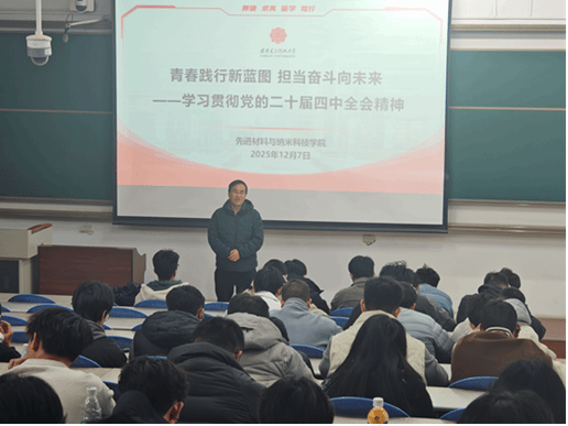 (通讯员 叶佳奇)为深入学习贯彻落实党的二十届四中全会精神,引导公司青年学子深刻把握时代脉搏,自觉将个人理想追求融入国家发展大局,12月7日下午,材料院在南校区B楼教室举办学习贯彻党的二十届四中全会精神主题晚点名活动。公司党委书记宋刚锋深入员工一线开展宣讲,本科生辅导员张闻功及2023级、2024级全体本科生共230余人参加。