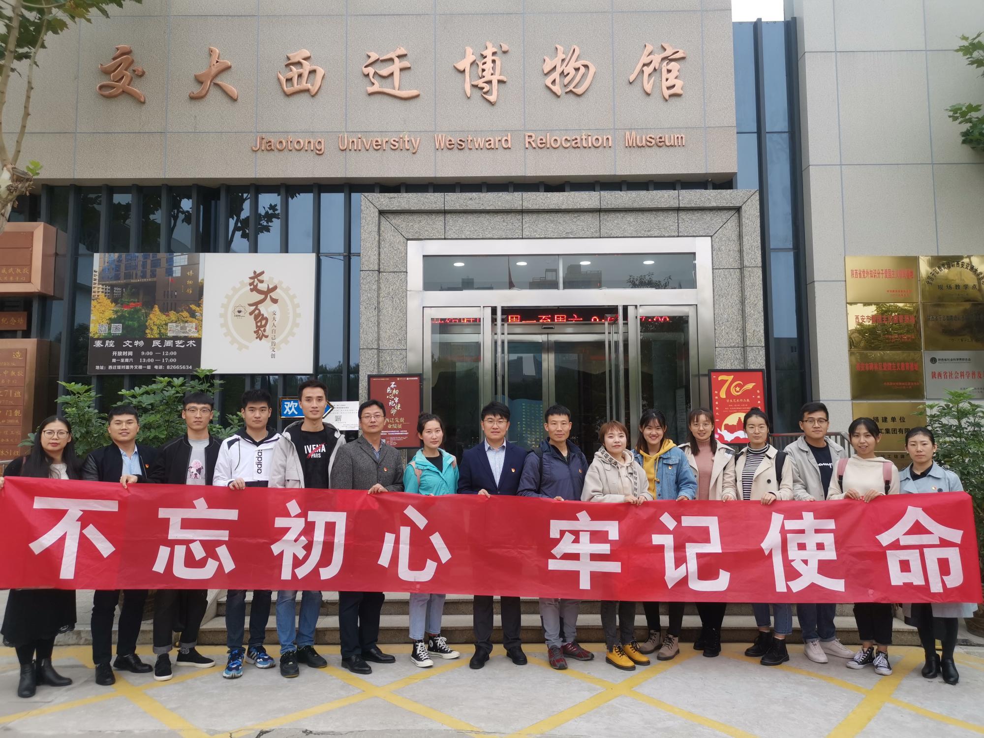 通讯员 杜敏 赵秉正)为落实公司党委关于“不忘初心、牢记使命”主题教育实施方案要求,进一步学习交大西迁老教授胸怀大局、无私奉献、弘扬传统、艰苦创业的精神;10月22日下午,公司领导班子率公司机关党支部党员、研究生党员与积极分子代表一行16人赴西安交通大学兴庆校区参观交大西迁博物馆,聆听波澜壮阔的交大西迁故事,学习光芒万丈的“西迁精神”。
