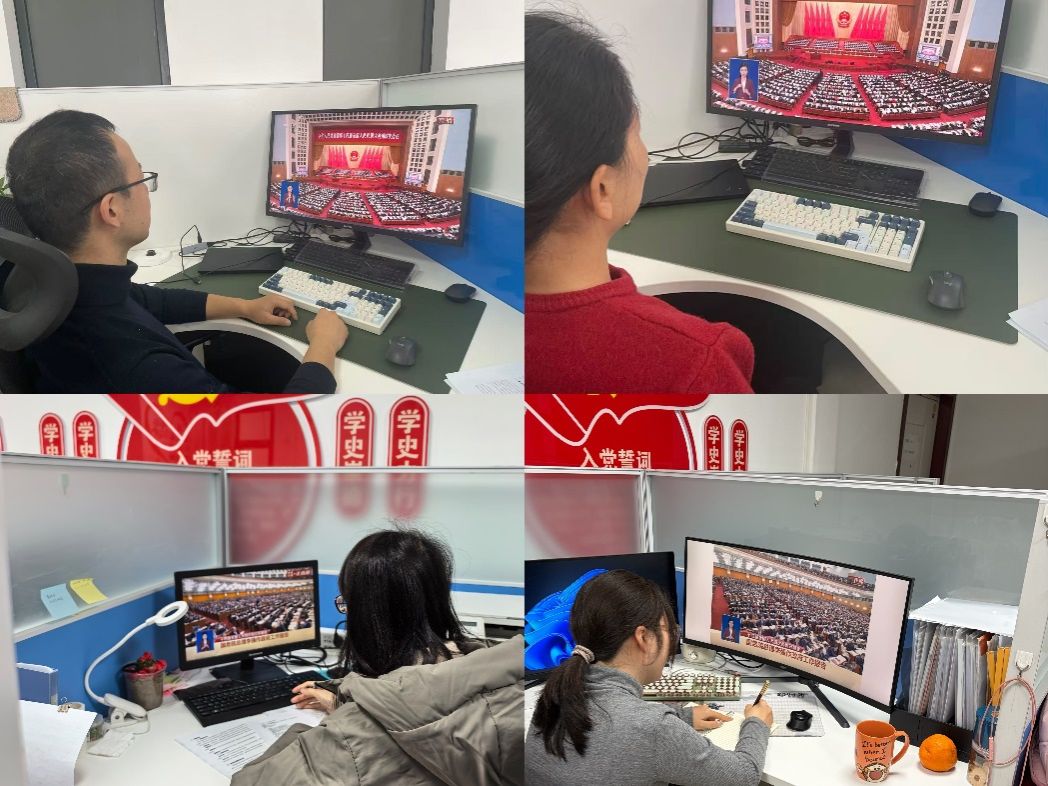 公司领导班子成员、机关管理干部、师生党员代表在南校区G142会议室集体观看学习,大家全体起立奏唱国歌,认真聆听强总理政府工作报告。直播结束后,各系所、各支部教师员工结合本职工作和学习,开展热烈讨论和交流。