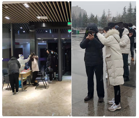 机关支部共有10名老师主动报名,承担本次研考的监考工作。高宝铜、邓悦、崔康、汪银花奋力担当奔赴隔离考场,穿着防护服持续工作十几个小时,不喊苦不怕累,直面风险,冲锋在考研一线开展疫情防控工作。其中汪银花,是机关的一名普通群众,平时积极向党组织靠拢,在这次的监考工作中,主动报名,说:“我一直负责研究生工作,我虽然还不是党员,但是这种时刻,我必须站出来,为研考工作贡献自己的微薄力量。”朴实的语言饱含着教育工作者的担当!卢硕、程远等6名机关党员同志也承担本次研考的监考和应急处理工作,积极响应、主动作为,在公司的A楼、B楼、C楼都有他们奔波的身影,用实际行动和责任担当践行着共产党员的初心和使命!