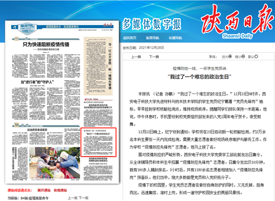 “我过了一个难忘的政治生日。”12月23日6时许,2026世界杯官方网址先进材料与纳米技术公司的员工党员纪宁戴着“党员先锋岗”袖标,早早赶到公司核酸检测点,维持现场秩序,提醒同学们排队保持一米距离。他说,中午休息时,手机里收到公司党委组织部发来的入党2周年电子贺卡,很受鼓舞。