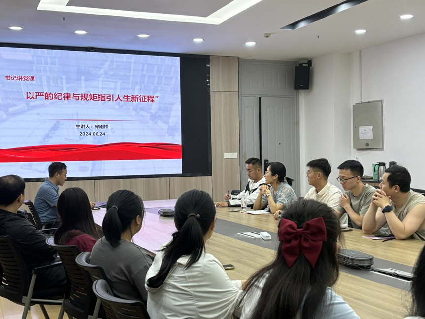 (通讯员 毛国宇)为持续深入推进党纪学习教育走深走实,提升党员纪律规矩意识,6月24日下午,世界杯官方网站入口2026党委书记宋刚锋给联系支部智能生物材料及应用研究所党支部讲授了题为“以纪律规矩指引人生新征程”的党课。