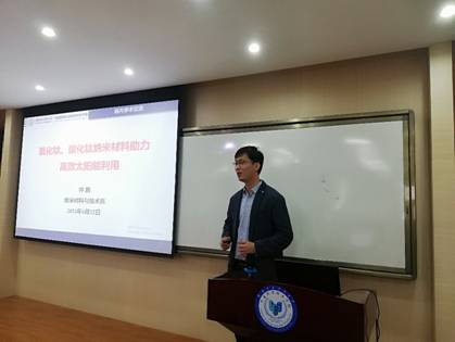 接着,公司青年教授仲鹏带来了题为“氧化钛、碳化钛纳米材料助力高效太阳能利用”的报告,围绕课题组近年来在纳米结构的制备新方法、性能调控的新策略的有关研究工作进行阐述,并列举了在新型光伏电池、太阳能海水淡化/污水净化和光催化净化空气方面的诸多应用案例。杨眉的报告题目为“氮化物半导体的分子束外延生长及其微波功率器件应用”,他以氮化物半导体的优势为背景,从氮化物半导体材料和外延结构的角度去讨论GaN高频器件面临的问题,从而思考推动器件工作频率提升的方法和途径。李晓波的报告题目为“二维ReS2的可控制备及其光电性质研究”,她以制备面向大规模器件应用的ReS2材料为主题,从发展材料制备方法学、结构和物性调控、器件应用探究三个方面展开了系统的讲解。