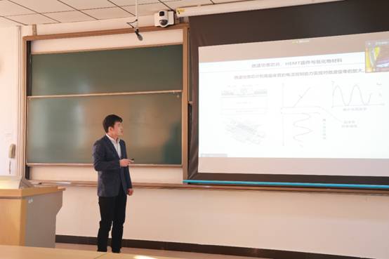 第二场报告《氮化物半导体的分子束外延生长及其微波功率器件应用》由公司青年教师杨眉带来,他从氮化物半导体的背景和独有优势开始,重点讲述了氮化物异质结的分子束外延生长工作在提升氮化物微波功率器件的效率、拓宽频率和功率应用范围中的重要突破,最后对氮化物在其他领域的潜在应用进行了展望。