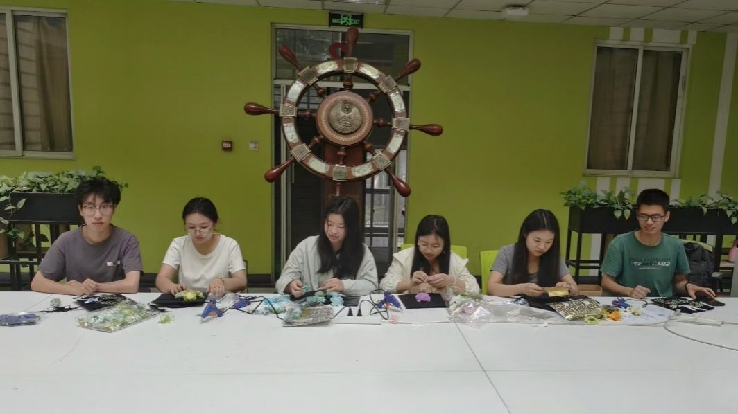 海棠5号楼后厅的桌上摆放着五颜六色的花材、丝带、装饰品以及各种手工工具,在满怀期待与互相交流、启发中,同学们开始了学士帽簪花DIY。他们一边参考网上教程,一边凭借进行创意设计,有的同学将鲜花与绿叶巧妙搭配,制作出清新自然的风格;有的同学则用亮片和丝带装饰,让簪花显得更加华丽夺目。整个活动现场充满了欢声笑语,气氛热烈而温馨。