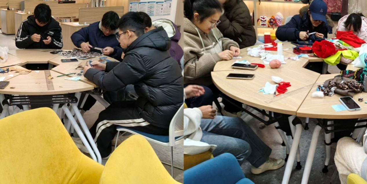 同学们根绝素材与工具构思创意敲定改造方案有人将牛仔布与蕾丝花边巧妙拼接,制作兼具实用性与美观性的手提袋拆解废旧毛绒玩偶,重新缝制为造型可爱的卡通挂饰;还有以彩色碎布为基底,通过刺绣拼贴工艺打造独特布艺摆件。创作过程中,同学们从生疏尝试逐步熟练操作,遇裁剪、缝纫技巧等难题时主动交流探讨、互帮互助,在协作中高效攻克创作障碍。把家里闲置的旧布料改造成手提袋,虽然做工不算完美,但亲手创作的过程充满成就感,也让我真切体会到环保的意义2025 级本科生王文佳展示着作品分享道。当一件件旧物在巧手下蜕变为精美手作,同学们脸上洋溢着收获的喜悦,现场始终萦绕着创意迸发的浓厚氛围。