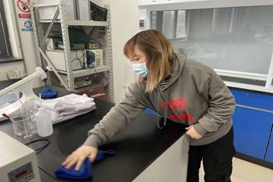 支华倩同学正在擦洗实验台面