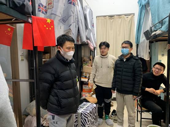 卢硕、杨如森、高宝铜、施建章分别来到海棠5号楼、8号楼、竹园4号楼、丁香11号楼员工宿舍,给因疫情防控要求不能“出门”的学子送去新年的祝福。他们与员工热情交谈,仔细询问员工疫情期间的思想、学习、生活等方面存在的困难,认真倾听员工心中不解的疑惑,耐心回答员工提出的问题,并嘱咐员工给家中牵挂的父母送上新年的问候。最后,他们也向同学们提出了希望,即希望同学们配合公司各项疫情防控工作、遵守各项疫情防控规定,在封控管理中规划好学习生活,不消极、不懈怠,不断提升个人的精神修养、知识储备、身心素质,静待疫情凛冬过,百花报春来。
