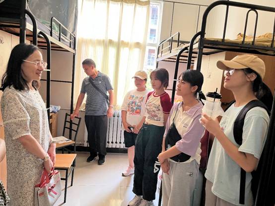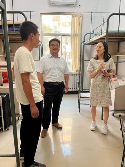 公司党委书记卢硕、执行经理杨丽、党委副书记陈刚、本科生辅导员李逸君和研究生辅导员刘男一同前往宿舍看望、慰问新生。他们关切地询问新生个人与家庭情况、来校是否适应、有什么困难需要解决,并鼓励新生多和老师请教,多向优秀学长学习,多和同级同学交流,尽快融入大学新生活。此外,公司为新生搭建起与后勤的服务交流桥梁,为新生暖心解决公寓所遇到的各类诉求和问题。