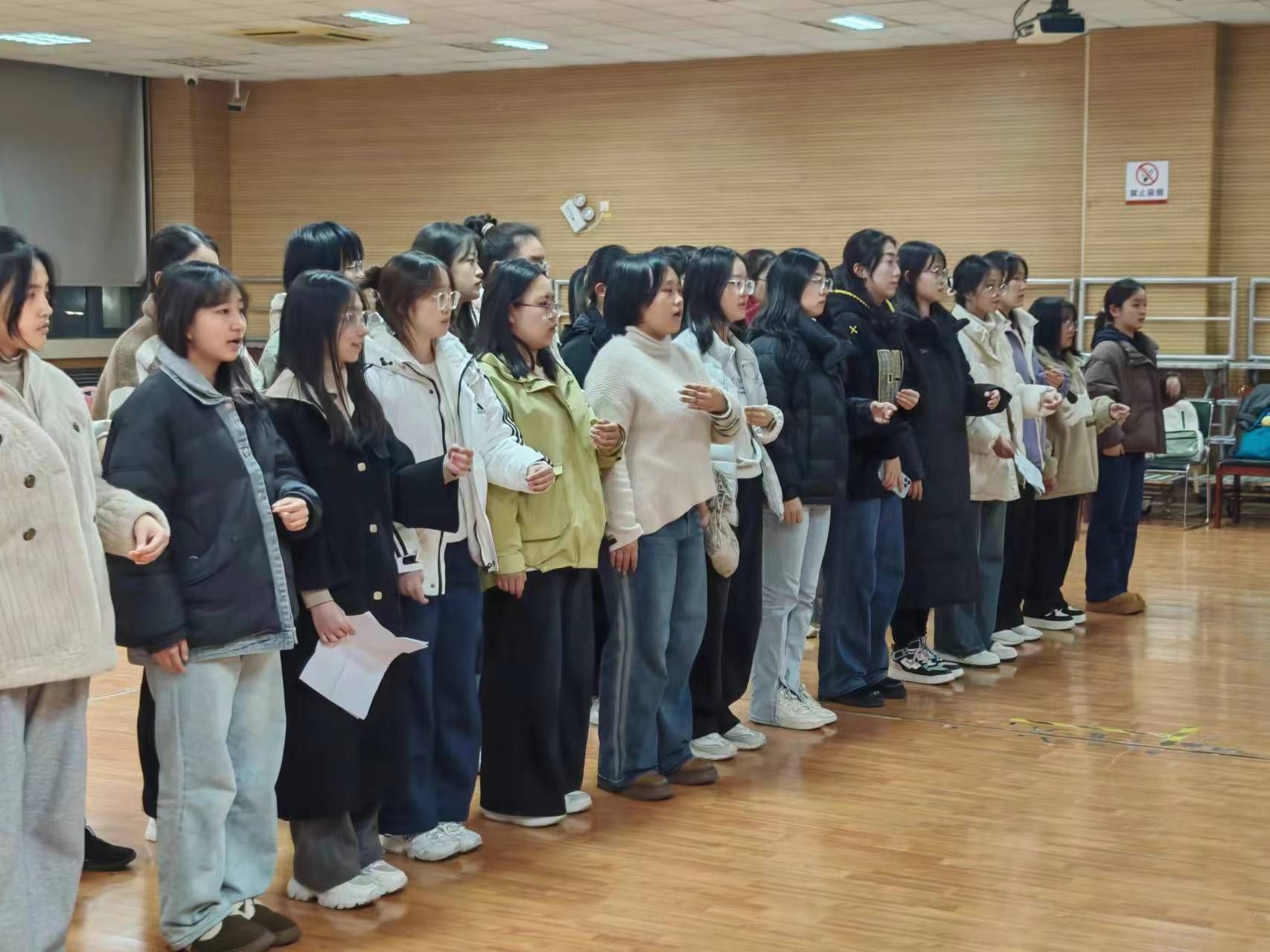 在分声部练习环节,两院的师生们积极参与,热情高涨。他们利用课余时间,反复练习歌曲旋律和歌词发音,力求每一个音符、每一个音节都能准确无误,用真挚的情感和饱满的热情,将这首歌曲演绎得淋漓尽致。他们的歌声时而激昂高亢,时而深情低回,仿佛将观众带回了那个烽火连天的年代,感受到了革命先辈们不屈不挠的精神力量。