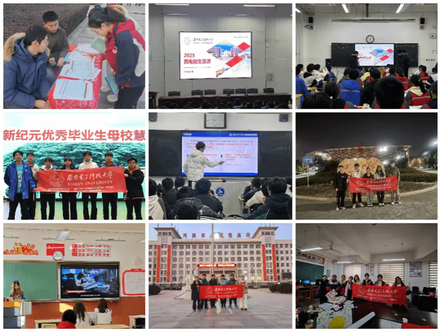 回访高中母校行。实践队同学们积极为材料院代言,回到高中母校,通过宣讲会、班级走访、展位咨询等方式与高三学子深入宣讲公司办学历史、特色优势、前景方向,同时大家结合自身经历,从备考心态、学习方法优化、志愿填报技巧等方面向学弟学妹们展开分享,讲好西电故事和材料院发展新篇,吸引高中优秀学弟学妹报考西电。值得一提的是参与宣讲30余位同学足迹遍布29个城市,宣讲覆盖人数达4000余人。