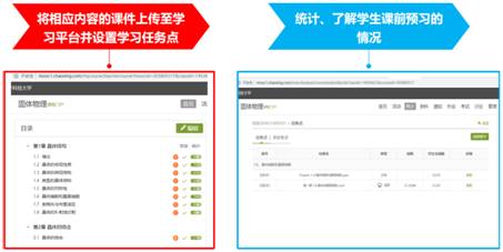 线上资源是开展混合式教学的前提。黄老师在开课前期,在学习平台构建了《固体物理基础》课程网站,上传教学大纲,使员工提前了解该门课程的教学目标和任务、学习内容、学习重点和难点以及课程的考核方式。同时建立课程章节,并根据授课内容和进度上传相应的教学课件和视频资源,并在课前将所讲内容的课件及相关视频上传至学习平台,让员工提前进行预习,给予员工充分的独立学习和理解的时间,尽可能让每个员工都带着较好的知识基础进入线上课堂,从而很好地保障了课堂教学的质量。此外,黄老师通过设置学习任务点,统计、了解员工的预习情况,进而督促员工进行课前的学习,从而为实现课前、课中、课后无缝连接打造良好的基础。
