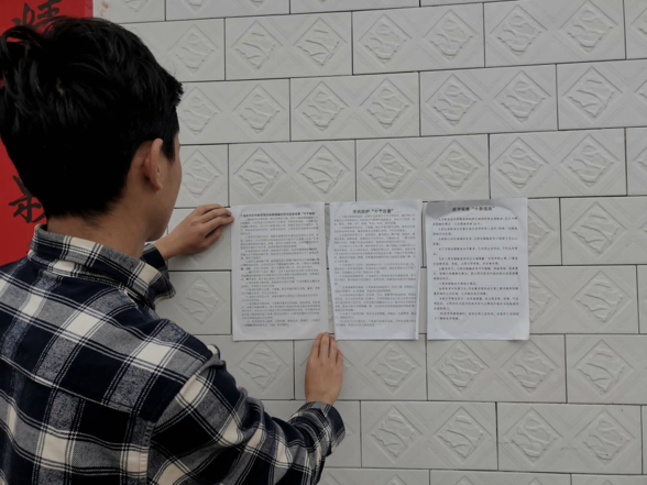 化身宣传卫士,传递人间真情。2018级员工毕昌恒在社区中广播进展,粘贴疫情防控知识,用声音传播科学,用双手张贴温暖,以“小善”传大爱,为大家加油鼓劲。