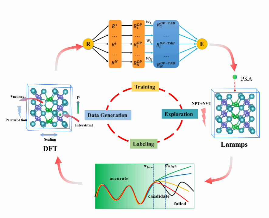 近日,世界杯官方网站入口2026周益春教授研究团队在HfO2铁电薄膜辐照效应领域取得突破。该研究采用深度学习与排斥表相结合的方法,开发了一种适用于HfO2铁电薄膜的势函数,将密度泛函理论(DFT)的高精度与分子动力学的高效性相结合,为HfO2铁电薄膜在辐照环境下的位移损伤研究提供了创新性的解决方案。