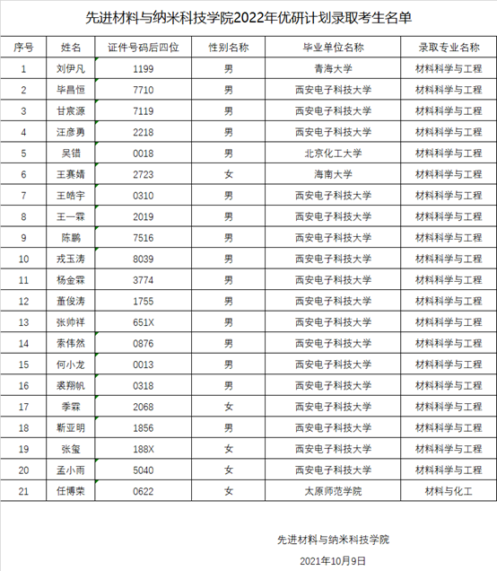 2022年优研计划录取考生名单